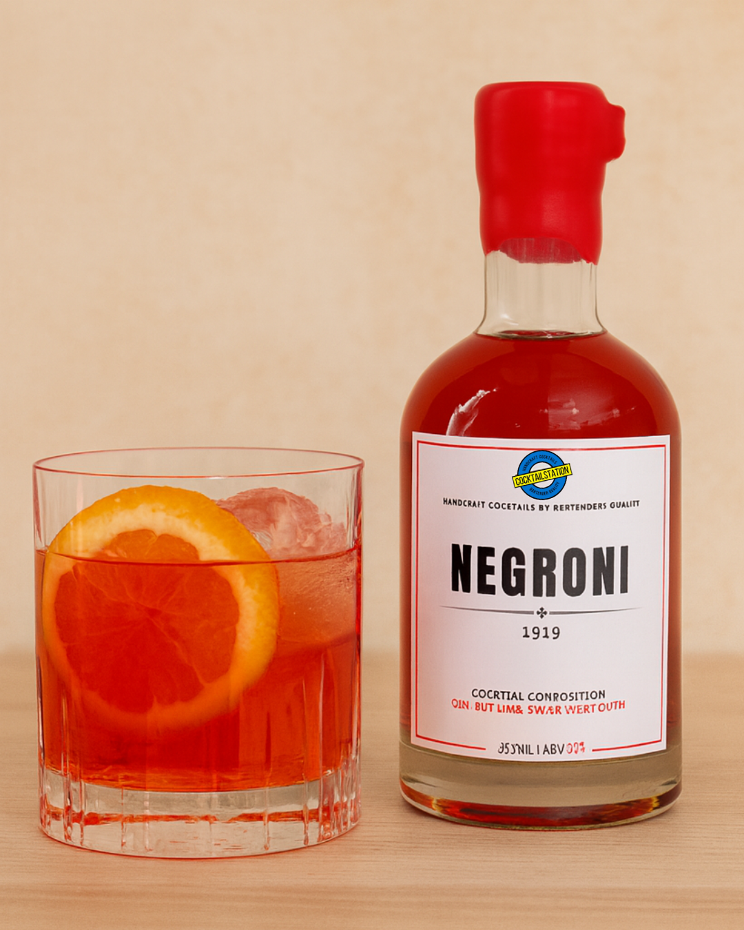 Esta elaborado por partes iguales de ginebra, Campari y vermut dulce.